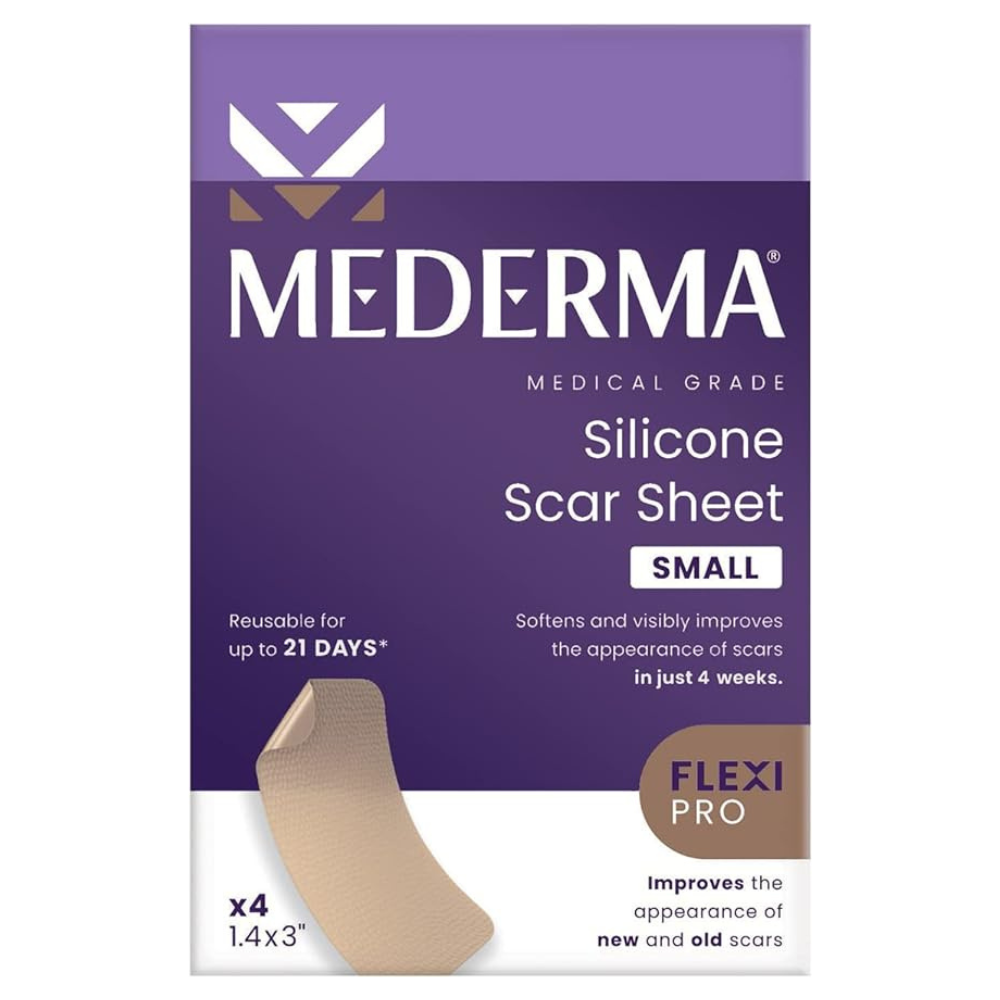 Soften and visibly improve the appearance of scars in just 4 weeks with Mederma Medical Grade Silicone Scar Sheets. Use on old and new scars, including hypertrophic scars and keloids from surgeries, cuts, injuries, burns and more. Each sheet provides a semi-occlusive layer on your skin and relieves the skin's natural tension. The breathable silicone technology results in increased hydration of the skin to ensure that damaged, scarred skin recovers more quickly. Each Flexi Pro sheet is washable, breathable and flexible. Use for persistent redness, "pulling" sensations, itching, restriction of joint movement, discomfort and cosmetic concerns. Easy to apply, the sheets are reusable for up to 21 days when used as directed. For best results, use a silicone scar sheet for at least 12 hours a day, up to 23 hours maximum. Each self-adhesive sheet provides UV protection (UPF 50) as standard to also help protect the scar from further damage. Mederma is the #1 recommended brand of scar treatments among Doctors, Pharmacists, Pediatricians, Dermatologists and Plastic Surgeons (Of U.S. physicians and pharmacists surveyed by an independent market research firm). Give your skin the benefit of medical grade care with Mederma. Not made with natural rubber latex. Drug free.