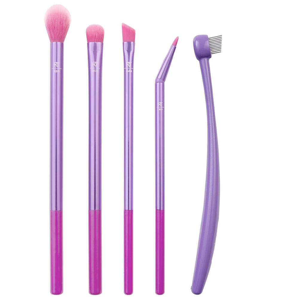 The bolder the eye, the better the selfie. Artist-level tools for maximum self-expression with the Real Techniques Eye Love Drama Kit. This set includes five new eye brushes and tools designed to help create bold, flawless eye looks. These can all be used with liquid, cream, and powder shadows, liquid and gel eyeliners, and mascara. Kit brushes include a blending brush, crease brush, wing liner brush , tight liner brush, and a lash defining comb. These brushes are made of UltraPlush synthetic hand-cut bristles, is vegan, and are cruelty free.