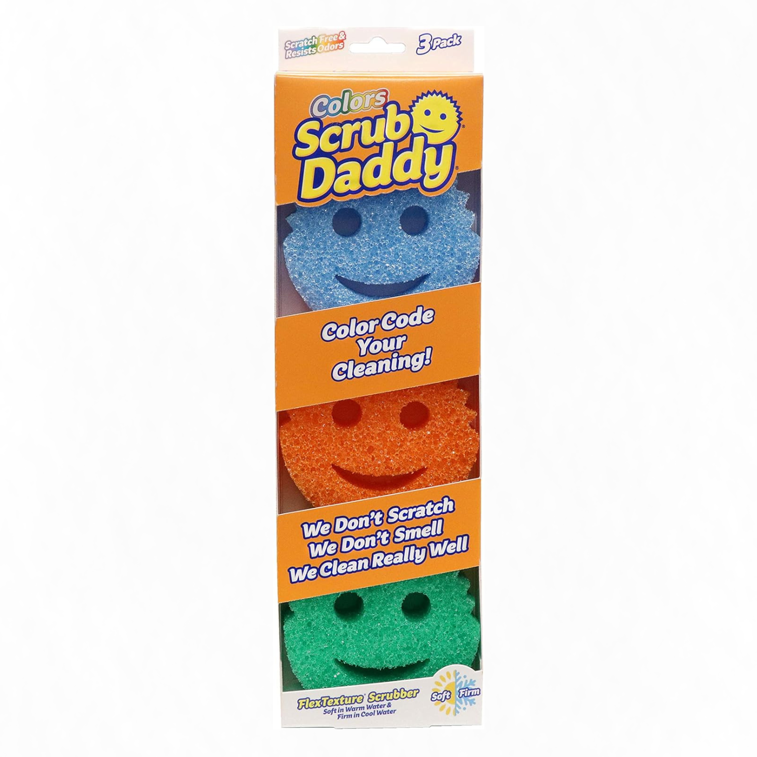 Scrub Daddy Sponge Set - Colors - Scratch-Free Sponges For Dishes And Home, Odor Resistant, Soft In Warm Water, Firm In Cold, Deep Cleaning, Dishwasher Safe, Multi-Use, Functional, Ergonomic, 3Ct